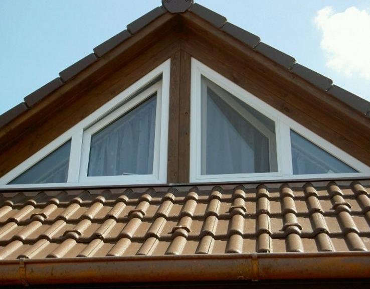 Il existe différents types de fenêtres de forme. Les triangulaires sont souvent montés aux étages supérieurs des bâtiments bas, décorent les combles et les greniers. Le bloc triangulaire s'intègre parfaitement dans les bâtiments à toit pointu, leur donnant un aspect complet.