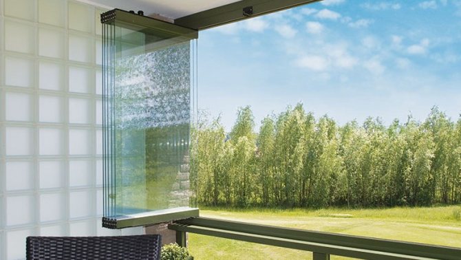Cette catégorie comprend les systèmes qui maintiennent les températures au-dessus du point de congélation.Mais en même temps, l'isolation complète requise pour la résidence permanente n'est pas faite. Pour cela, le système Slidors convient (pour en savoir plus, lisez l'article "Vitrage de balcon Slidors"). Il fonctionne sur le même principe qu'une armoire. Les volets à rouleaux se déplacent le long des guides.
