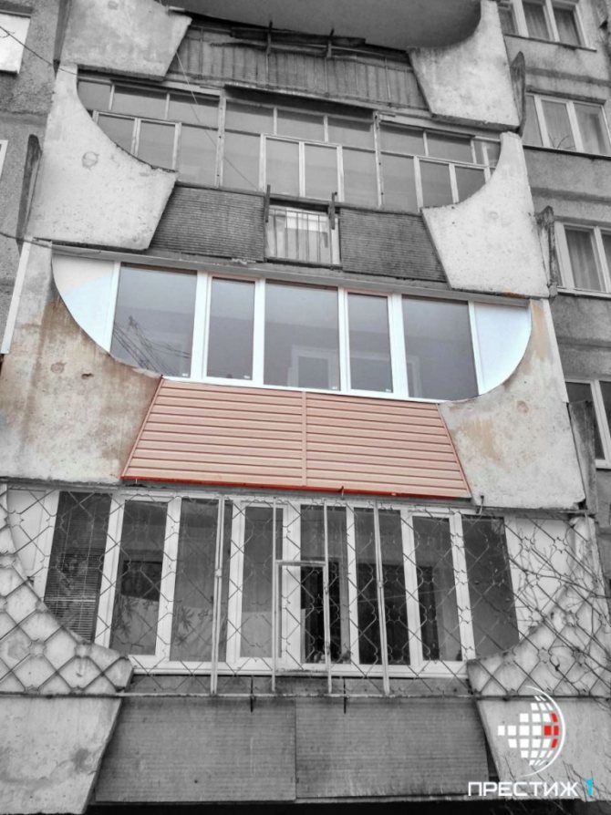 Lorsque tous les blocs de fenêtres sont fixés, vous devrez utiliser la doublure pour fermer la partie du balcon qui reste non assise. Si la dalle est faible, le revêtement est remplacé par une tôle profilée.