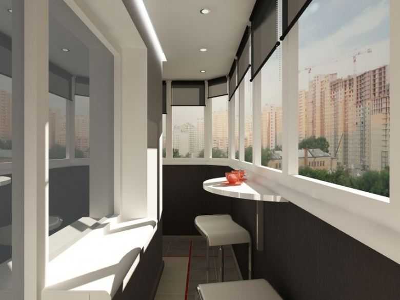 Un balcon avec un plat à emporter élargit l'espace personnel d'une personne. Cela ne nécessite pas d'expansion de la dalle elle-même, ce qui est techniquement impossible. Mais le cadre doit être fiable et léger. Il est préférable de choisir des fenêtres coulissantes afin de ne pas créer de contraintes supplémentaires sur le bâtiment lors de l'ouverture.