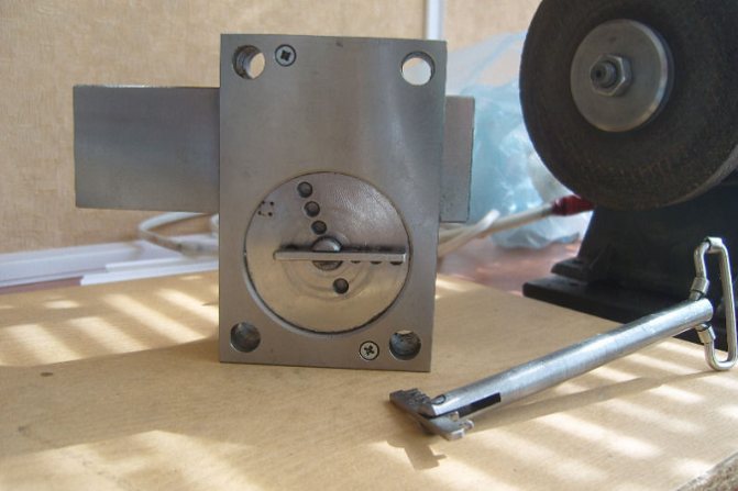 Pour gagner du temps et se protéger des «crevaisons» inutiles, il vaut mieux soit acheter un dispositif de verrouillage à vis prêt à l'emploi chez des brocanteurs, soit commander sa fabrication par un professionnel. Après avoir réussi, l'appareil devra être légèrement modifié, à savoir, pour doter son trou de serrure d'un "rideau" métallique en vissant ce "rideau" à la traverse du niveleur, comme décrit ci-dessus. Et à la fin, nous obtenons un dispositif de verrouillage bien protégé.