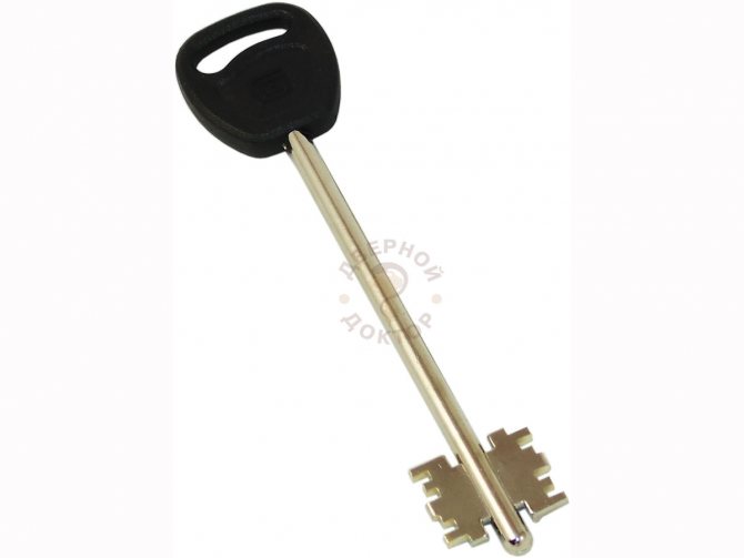 - Les touches sont d'apparence similaire dans la plupart des cas. Ils ne se distinguent que par la partie active, qui est déterminée par la particularité de la serrure. Par conséquent, ils sont disponibles en différentes longueurs, épaisseurs, avec et sans trou, etc.