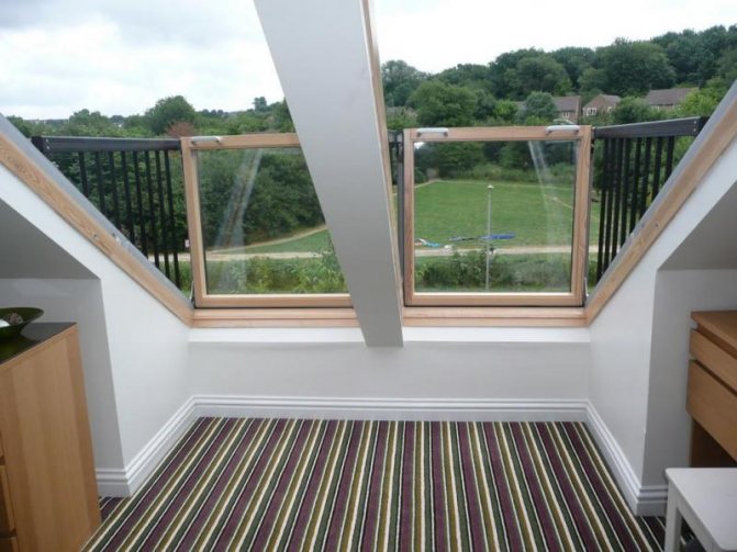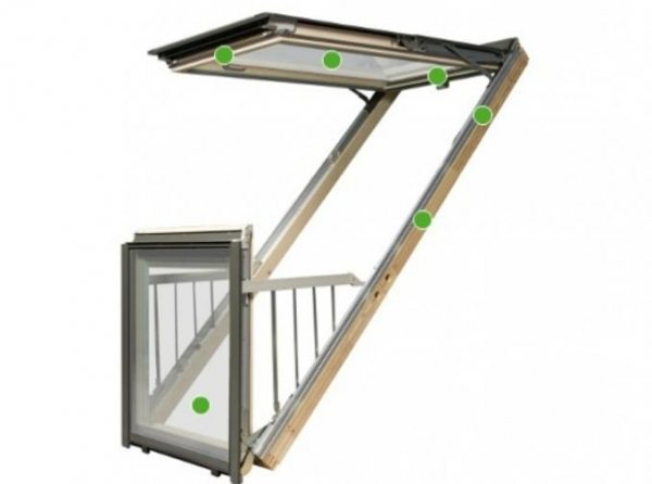 Vous pouvez utiliser le balcon de différentes manières: vous pouvez y sortir, y mettre une chaise et vous détendre par beau temps, l'utiliser comme sortie sur le toit, endroit pour fumer. Le balcon peut servir de petite zone supplémentaire, mais il ne faut pas compter sur le fait que la structure peut devenir une loggia à part entière: la surface de la structure est petite, mais elle peut être utilisée comme une salle de stockage miniature. La fenêtre de toit du transformateur peut changer de position, elle est donc pratique à utiliser et prend la position qui vous intéresse en ce moment.