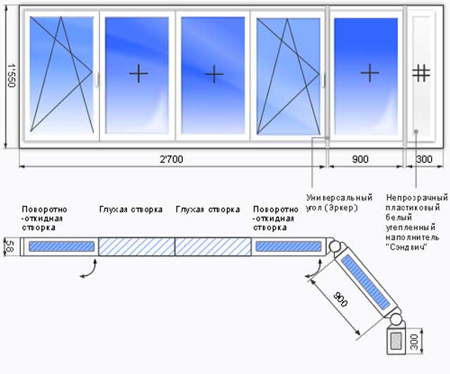 Pour la fabrication de telles structures, on utilise des profilés chauds en plastique ou en bois ou de l'aluminium froid Provedal, qui a une série avec une option similaire pour l'ouverture du vantail.