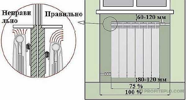 Étant donné que les batteries de chauffage central ne sont pas situées sur les balcons, lors du choix de la hauteur d'installation, vous devez respecter les normes de sécurité, en respectant une hauteur d'au moins un mètre. En dessous, il doit être isolé pour que le froid ne puisse pénétrer dans la pièce.