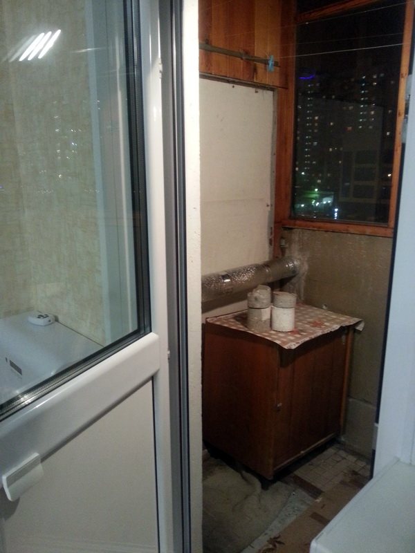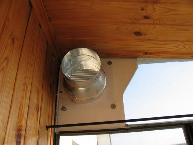 Algorithme: Deux trous doivent être percés - un dans le mur de la pièce donnant sur le balcon et un trou supplémentaire dans le mur extérieur du balcon lui-même. Une grille de protection est insérée dans l'ouverture donnant sur la rue. Un conduit d'air est posé entre les trous - il peut être posé le long du mur ou du plafond du balcon afin qu'il n'interfère pas. Un ventilateur est suspendu à l'intérieur de la pièce.