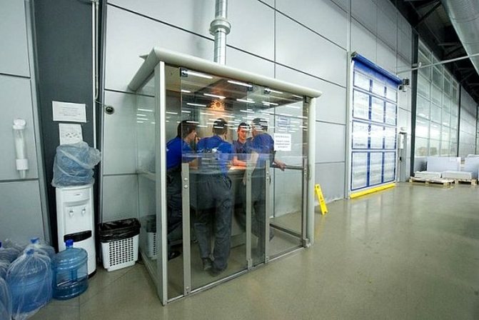 Une alternative intéressante pour une chambre fumeurs est une cabine fumeurs. Cet appareil, conçu principalement pour le contingent de bureaux fumeurs, peut également être installé dans une zone résidentielle. L'appareil est une petite armoire, généralement avec une ventilation intégrée.