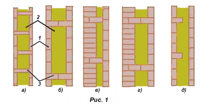 - pour le chevauchement, des coins sont utilisés qui sont posés à une distance des dimensions du matériau utilisé pour la maçonnerie;