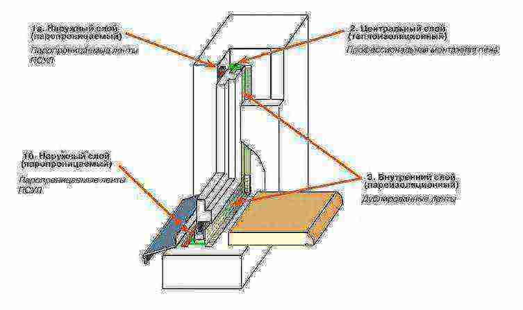 Les erreurs énumérées ci-dessus lors de l'installation de fenêtres en PVC à l'aide de matériaux perméables à la vapeur et imperméables à l'eau peuvent être évitées, car les propriétés du ruban étanche ne permettront pas les fuites dans la pièce en raison de la condensation. Dans la plupart des cas, une attention particulière est accordée aux coutures d'assemblage, c'est-à-dire à leur exécution. Au cœur du joint d'assemblage se trouve une certaine couche, qui comprend divers matériaux d'isolation utilisés dans le processus de remplissage des espaces.
