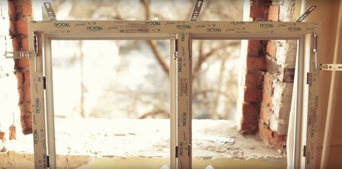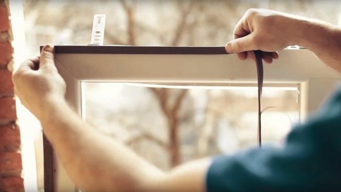 Lors de l'installation de fenêtres en plastique pendant la saison fraîche, le ruban doit être réchauffé à l'avance avec un sèche-cheveux de construction, jusqu'à ce qu'il soit complètement étiré. Effectuez ensuite l'installation du cadre dans l'ouverture de la fenêtre. Pour cela, des cales d'espacement sont utilisées.
