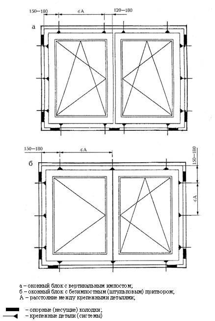 Le choix de la solution structurelle des nœuds de la jonction du bloc de fenêtre (porte) à l'ouverture du mur extérieur est effectué au stade du développement de solutions architecturales et de conception, en tenant compte des charges existantes et est confirmé par les calculs correspondants (clause 5.1.3 GOST 30971-2012).