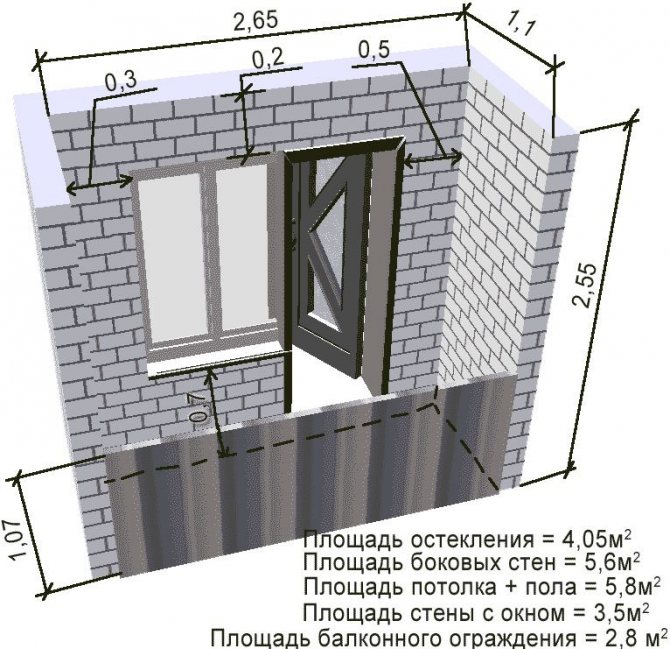 La structure sur laquelle la fenêtre sera installée dans ce cas sera la balustrade du balcon, de sorte que la largeur de la fenêtre sera égale à sa longueur. Étant donné que la combinaison des parties latérales et avant de la structure sera réalisée en installant le profilé d'angle à l'endroit requis, leur largeur doit être soustraite de la longueur de la clôture - ce sera la largeur de la nouvelle fenêtre.