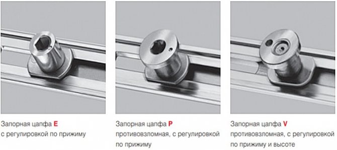 Le réglage du degré de pression de l'ouvrant sur le cadre est effectué à l'aide de mécanismes de verrouillage (broches) situés sur les extrémités latérales et supérieures des châssis. L'apparence, le nombre et l'emplacement de ces appareils peuvent varier en fonction du fabricant et de la catégorie de prix de l'unité en verre.