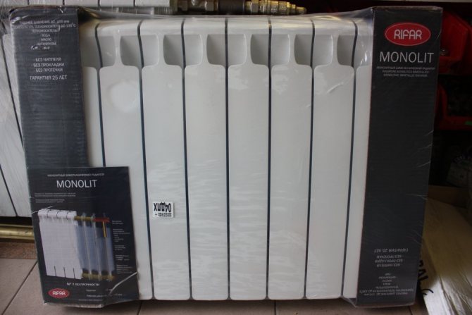 Il s'agit d'un radiateur bimétallique breveté et fondamentalement nouveau avec des caractéristiques techniques élevées correspondant aux conditions de fonctionnement les plus sévères. Monolit est extérieurement similaire aux dispositifs sectionnels conventionnels en aluminium et bimétalliques. La principale différence est à l'intérieur, où une structure en une seule pièce non séparable de canaux en acier est assemblée pour le caloporteur en mouvement à l'aide d'une technologie de soudage unique. Un tel agencement de batterie, en principe, élimine l'apparition de zones potentiellement dangereuses pour les fuites, et c'est la base d'une fiabilité exceptionnelle.