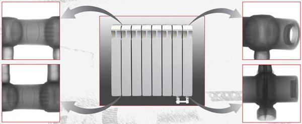 - Les batteries Rifar sont utilisées dans diverses variantes de connexion au système de chauffage: connexion unilatérale, diagonale et inférieure. Dans les secteurs individuels, les appareils avec une connexion inférieure sont plus souvent utilisés, et dans les immeubles de grande hauteur - avec une connexion latérale.