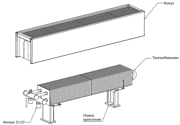 Le principe de fonctionnement des convecteurs de chauffage à eau est très simple. Le caloporteur qui les traverse chauffe les ailettes en acier. Au fur et à mesure qu'il se réchauffe, il tend vers le haut et la prochaine portion d'air entre à sa place. Les lois pures de la physique fonctionnent ici, fournissant un chauffage de haute qualité des locaux d'habitation. La procédure de chauffage est effectuée de manière absolument silencieuse, sans déranger le ménage.
