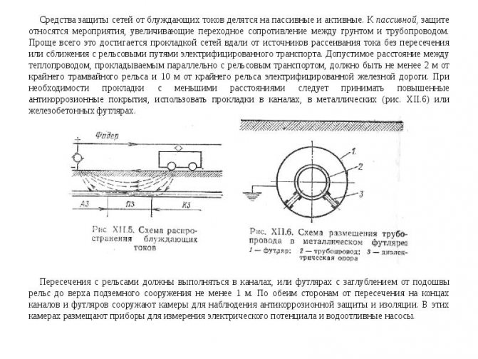 Comme on peut le voir sur la figure, une tension constante est fournie au réseau de traction à partir de la sous-station et revient le long des rails. Avec une résistance insuffisante des voies ferrées au sol, des courants électriques parasites se produisent dans le sol. Si un pipeline ou une autre structure métallique se trouve sur le chemin de propagation de la fuite de courants vagabonds, il devient alors conducteur d'électricité.