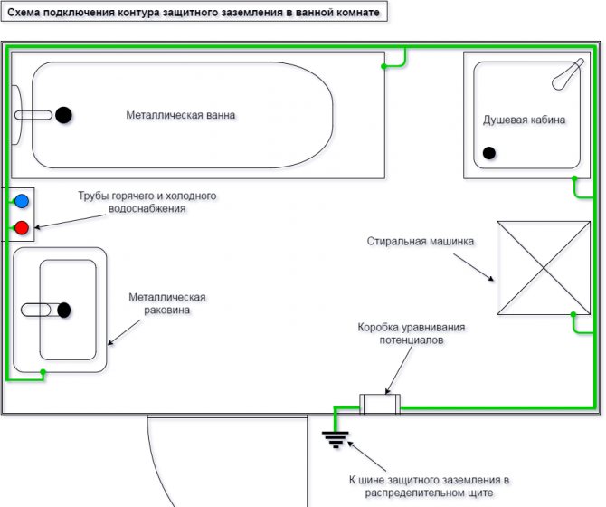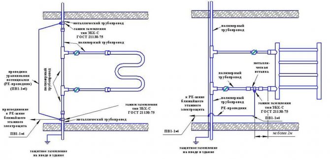 Lorsque toute la tuyauterie était en acier, il n'y a jamais eu de problème de mise à la terre des batteries. Cela est dû à la mise à la terre de chaque pipeline, en tant qu'élément étendu, dans deux sections du sous-sol. De plus, la salle de bain était auparavant mise à la terre à l'aide de conducteurs séparés qui fournissaient une connexion électrique à l'alimentation en eau.