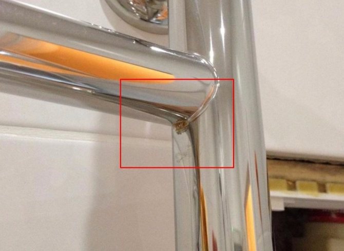 - Dans la plupart des cas, tous les processus se déroulent de manière relativement imperceptible jusqu'à ce que des gouttes d'eau apparaissent à la surface du sèche-serviettes chauffant... Après cela, la vitesse des processus de corrosion augmente considérablement et il devient presque impossible de les arrêter.