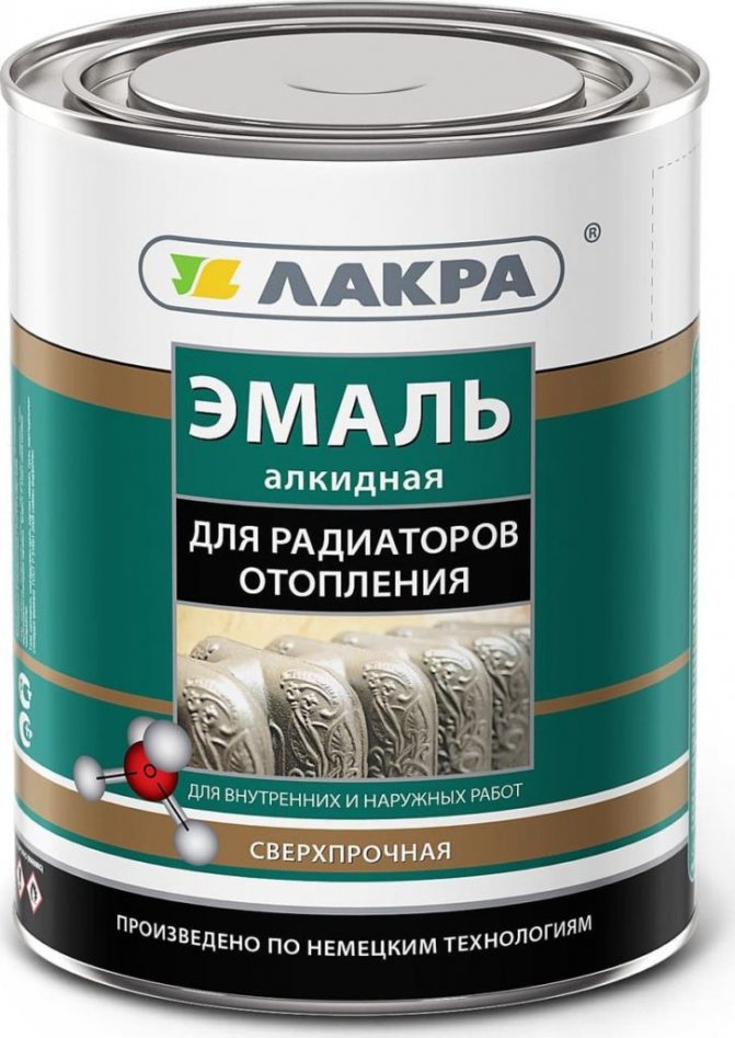 - Émail alkyde Heitzkorperlak. Il a un excellent pouvoir couvrant, il n'est utilisé que si les systèmes de chauffage sont froids.