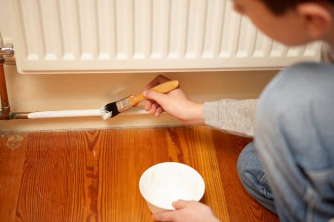 - S'il est possible de démonter les appareils de chauffage, cela facilitera grandement le processus de peinture. Les radiateurs peuvent être emportés à l'extérieur et peints à l'air frais en les tournant du côté pratique.