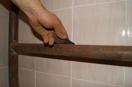 - Poncer la surface avec du papier de verre, nettoyer les endroits où il y a de la rouille, faire briller le métal.