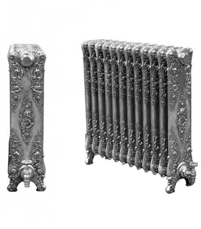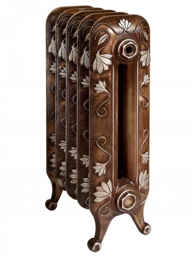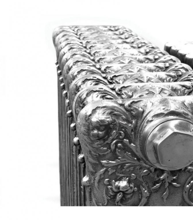 Le moulage en fonte de haute qualité, la forme originale des sections, l'élégance de l'ornement à motifs créent l'attrait unique du nouveau modèle de batteries en fonte. Leur prix est supérieur à celui des modèles standards. Dans le même temps, l'ancien design des appareils de chauffage complète organiquement le style classique, gothique ou anglais de la décoration des pièces.
