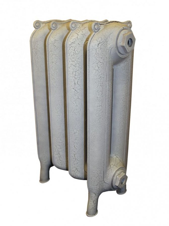 - En règle générale, les parois extérieures de la batterie sont recouvertes d'un apprêt ou d'un émail époxy, considéré à juste titre comme l'un des revêtements les plus durables. Il n'est pas sujet à l'abrasion ou à la décoloration. Si nécessaire, les radiateurs en fonte semi-antique peuvent être peints à votre guise à la maison.