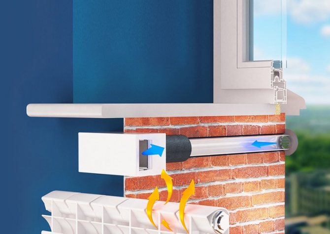 Le système de ventilation domestique, comme tout autre système de ventilation naturelle, fonctionne selon le principe suivant: il démarre l'air extérieur frais et évacue l'air intérieur pollué dans les mines de ventilation. Par conséquent, un apport d'air frais de l'extérieur est nécessaire, c.-à-d. l'ouverture sur la rue est obligatoire.