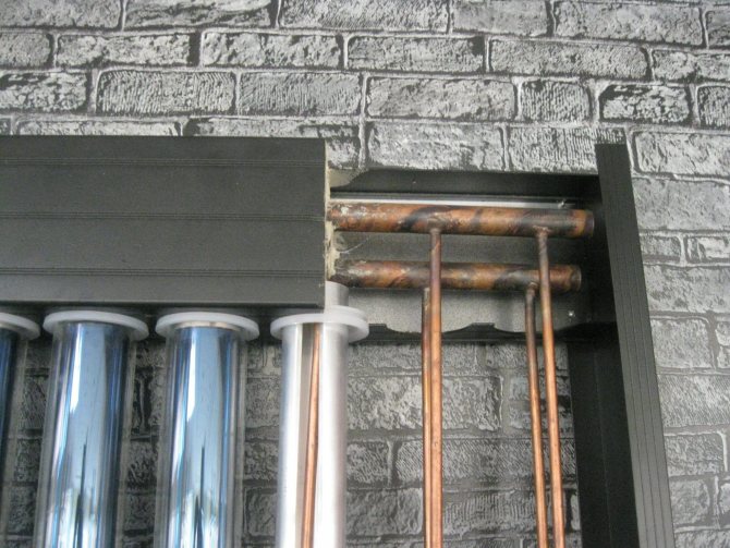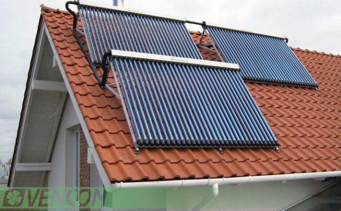 - Tubulaire. L'élément principal de ces systèmes est tubes coaxiaux en verre, entre les parties extérieure et intérieure desquels un vide est créé... Une couche protectrice transparente à conductivité thermique extrêmement faible est formée, ce qui permet à l'eau (ou à l'antigel) de recevoir l'énergie solaire, pratiquement sans la consommer sur l'environnement. Le coût de tels collecteurs est élevé, la maintenabilité est extrêmement faible et problématique.
