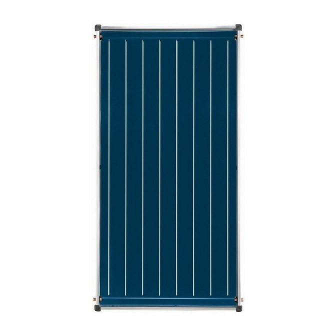 - Plat. Représenter boîtes plates avec couvercle transparent... Le fond est recouvert d'une couche qui accepte activement l'énergie. Des tuyaux KE y sont soudés, le long desquels l'eau se déplace. Recevant de la chaleur, elle est envoyée au système de chauffage. Parfois, de l'air est pompé sous la couverture, ce qui augmente l'efficacité de l'apport énergétique et réduit les pertes. Il existe également des conceptions où les tubes sont situés entre deux couches réceptrices dans lesquelles des rainures sont créées pour eux. Cela permet un meilleur transfert de chaleur.