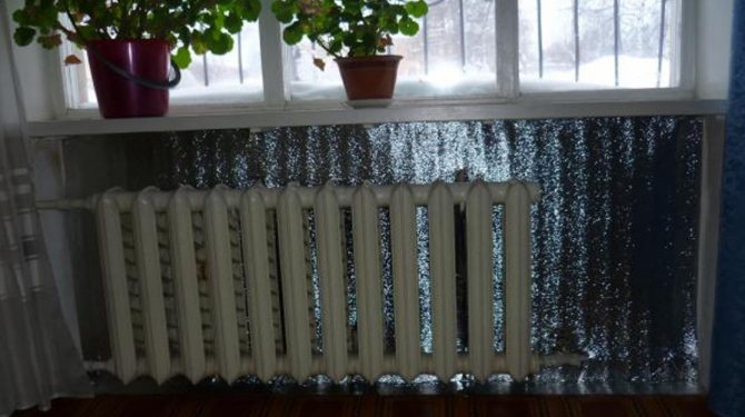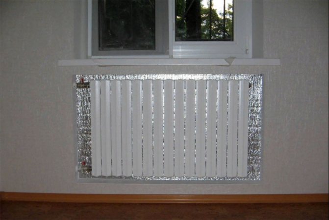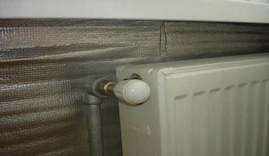 L'utilisation d'un écran réfléchissant est une méthode assez populaire pour augmenter la dissipation thermique. La mousse de polyéthylène expansée sur un côté est idéale à cet effet. Un tel écran (il doit être plus grand que le radiateur lui-même) est placé derrière la batterie avec une feuille en direction de la pièce et fixé au mur avec du ruban adhésif double face ou des clous liquides. La mousse de polyéthylène fournit une isolation supplémentaire et la feuille réfléchit la chaleur qui a réchauffé le mur avant d'installer l'écran, la dirigeant dans la pièce.