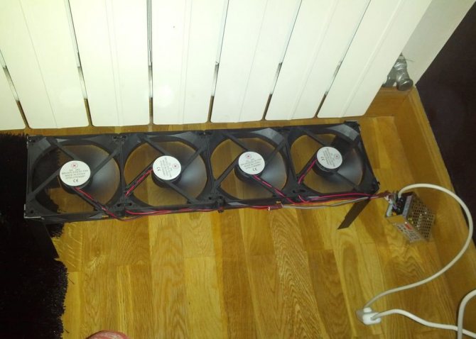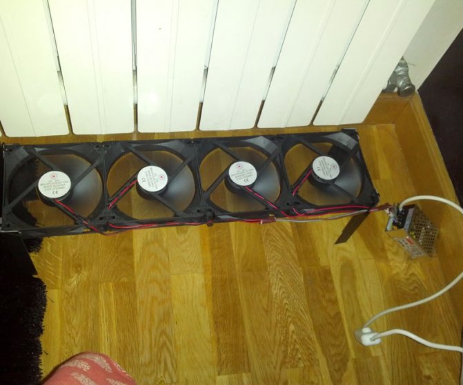 Information utile! S'il y a des refroidisseurs d'ordinateur à la maison qui ne sont pas utilisés, vous pouvez les installer sous le radiateur, en dirigeant le flux d'air vers le haut. Cela maximisera la convection, résultant en une pièce nettement plus chaude.