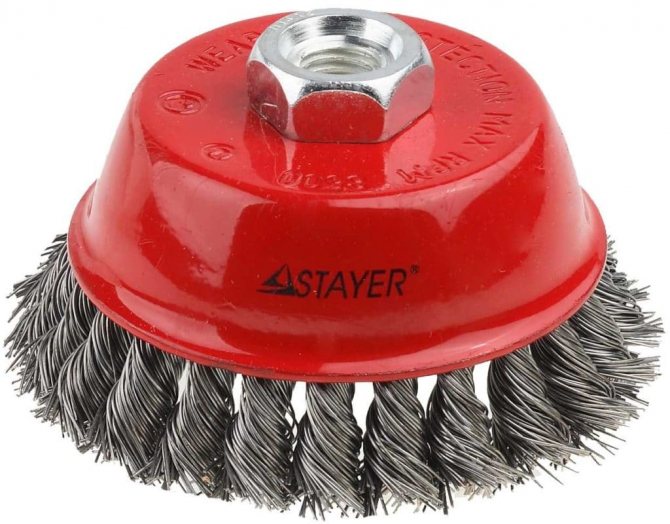 Au lieu d'une perceuse, il est possible d'utiliser une meuleuse avec un accessoire spécial - brossage, ou une meuleuse à main avec un accessoire abrasif.