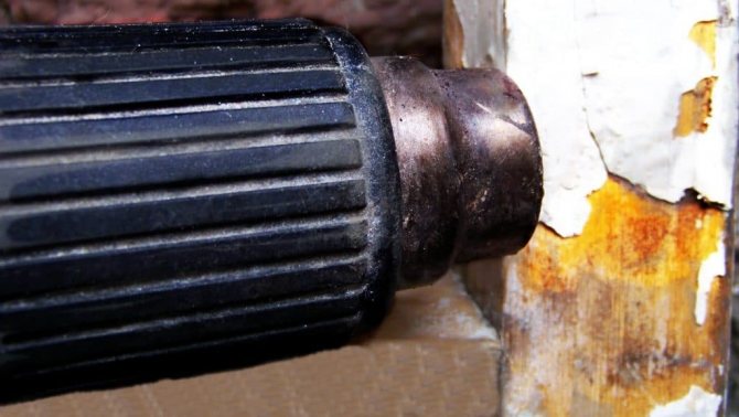 Important! Si vous décidez néanmoins d'effectuer des travaux dans l'appartement, vous devez utiliser un sèche-cheveux de construction, qui ne présente pas un danger aussi élevé qu'un chalumeau. Les murs de la pièce doivent d'abord être recouverts d'une couche protectrice en carton.