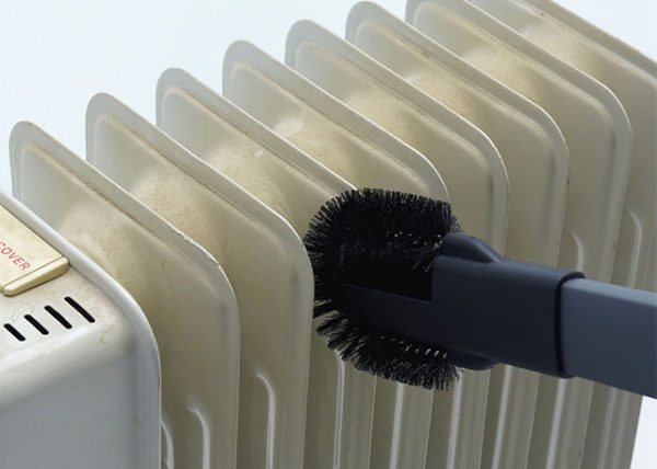 - Utilisez un aspirateur. S'il est complété par une buse étroite, il sera utile lors du nettoyage des appareils de chauffage. Tout d'abord, retirez toute la poussière à l'intérieur, puis traitez soigneusement la surface extérieure. Après cette procédure, vous pouvez essuyer le radiateur avec un chiffon humide.