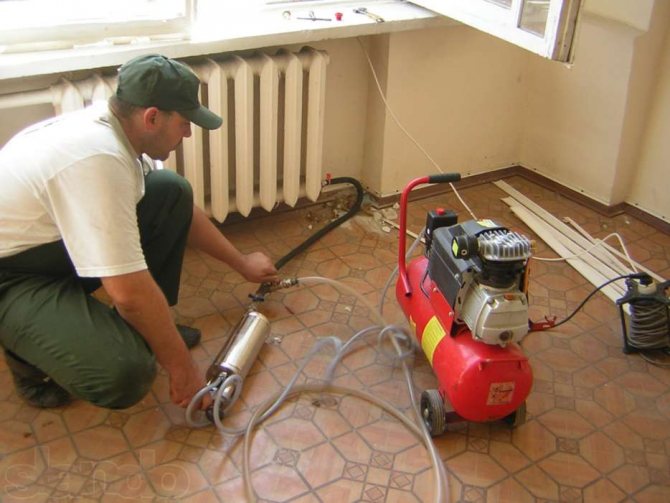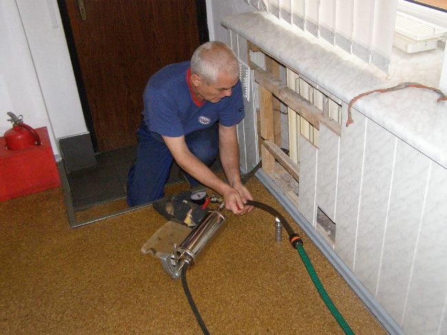 - Non seulement le radiateur est lavé (soufflé), mais également la conduite de chauffage. Après tout, tous les débris qui y sont coincés finiront invariablement dans une batterie nettoyée.