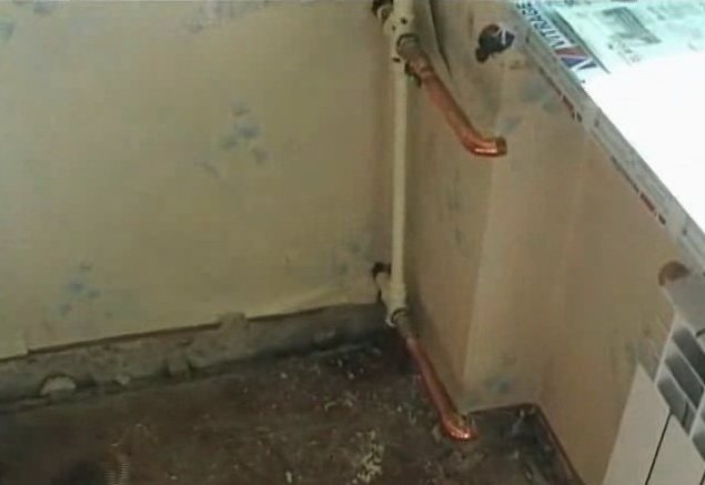 à l'aide du fer dit à souder (puissance optimale 800 W, température de fonctionnement 2700C), une canalisation montée au mur est reliée à des radiateurs fixes, sans oublier d'installer, si prévu par le projet, des régulateurs thermostatiques à tige.