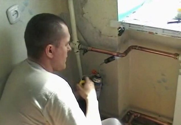 S'il y a des tuyaux en cuivre, ne vissez les raccords que pour essayer, puis dévissez-les. Mesurez la longueur de tuyau requise jusqu'au raccord pivotant. Prenez le tuyau et coupez le morceau désiré. Après cela, nous nettoyons les bords avec le même broyeur. Placez-le couché et entraînez l'extrémité du tube dans un cercle tournant. Préparez un chalumeau. Il est souhaitable avec une extrémité étroite de la flamme, mais ceux-ci sont un peu plus chers, donc s'il n'y a pas de possibilité, vous pouvez vous en tirer avec le plus simple pour 150-200 roubles. Nous préparons la soudure. Vous devez souder le raccord de transition (du câblage de la colonne montante) au tube séparément, puis visser le raccord avec le tube en place. Si vous faites le contraire, vous risquez de brûler la vanne du robinet à boisseau sphérique.