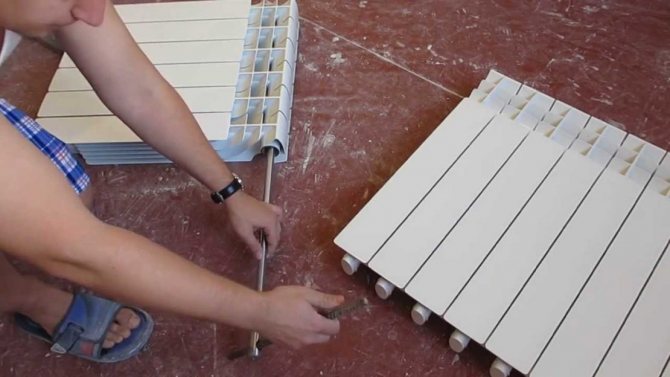 Emballez le radiateur avant de l'installer. C'est le nom du processus d'installation de bouchons, de raccords et d'un robinet Mayevsky dans les trous du radiateur.