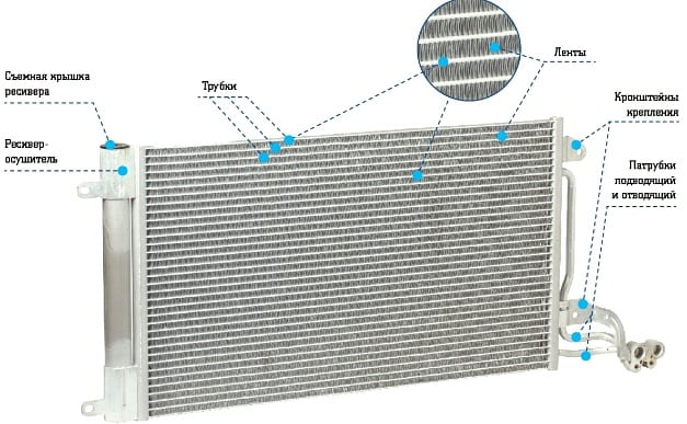 Une partie importante du système de climatisation de la voiture est le radiateur du climatiseur (alias le condenseur).