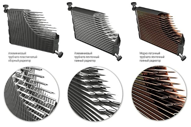 Les radiateurs en aluminium sont moins chers, ils sont plus légers que les versions en cuivre (environ 5 kg) et leur durée de vie est plus longue. Mais ils ne peuvent pas être correctement réparés.