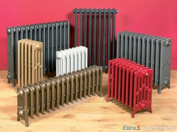 Commençons par les radiateurs en fonte, qui aujourd'hui ont changé de conception, mais, comme auparavant, ont de larges canaux d'eau et sont constitués de plusieurs sections en fonte. Des joints résistants à la chaleur en caoutchouc ou en paronite, placés entre les sections, assurent l'étanchéité requise. La longueur du radiateur fini est déterminée par le nombre de sections, la hauteur varie de 0,35 à 1,5 mètre et la profondeur peut être de 0,5 mètre ou de plusieurs centimètres. En fonction du volume de la pièce, vous pouvez sélectionner la taille souhaitée du radiateur, alors qu'il y a une possibilité de sa modification (par exemple, supprimer une section supplémentaire ou en ajouter plusieurs nouvelles).