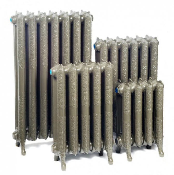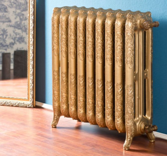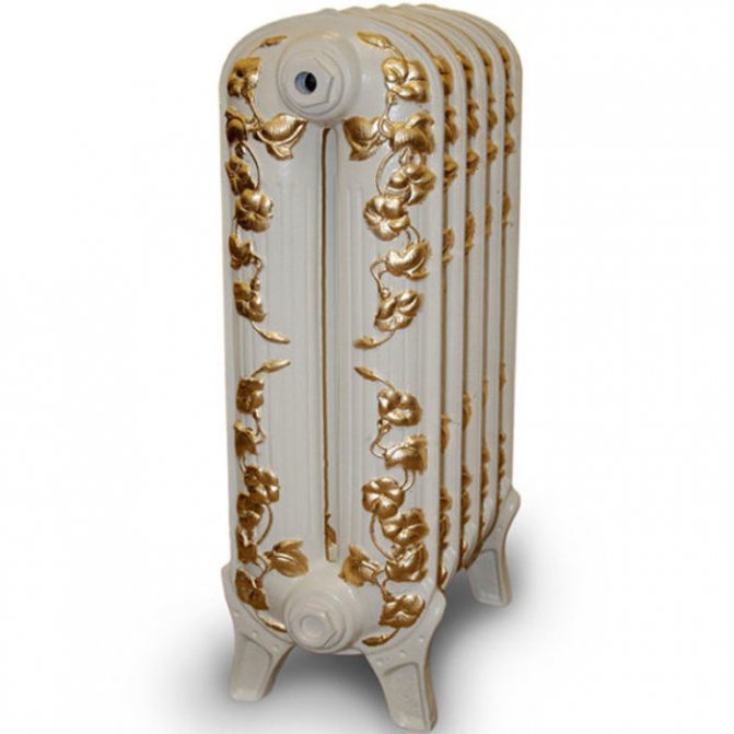Il convient de mentionner les modèles de radiateurs, artistiquement moulés en fonte. Ils chauffent non seulement parfaitement la pièce, mais sont également capables de lui donner du charme et du charme. De tels radiateurs aux motifs de moulage exécutés habilement sur leur surface sont produits principalement par des fabricants étrangers. Comme toute œuvre d'art, de tels appareils coûtent beaucoup d'argent.