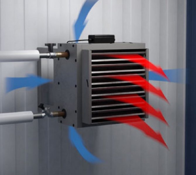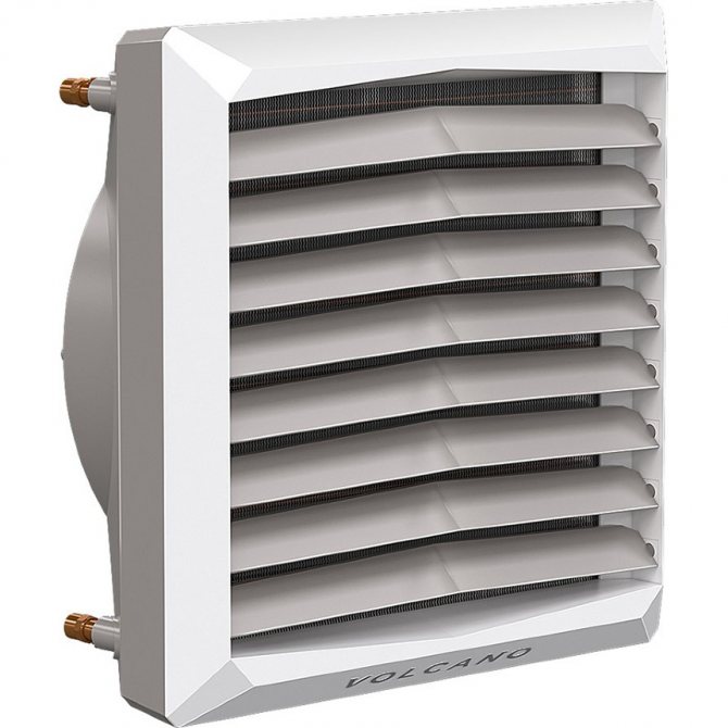 Un appareil de chauffage est un appareil utilisé pour chauffer l'air. Selon le principe de fonctionnement, c'est un échangeur de chaleur qui transfère l'énergie du fluide caloporteur au flux du jet d'alimentation. Il se compose d'un cadre, à l'intérieur duquel des tubes sont situés en rangées denses, connectés en une ou plusieurs lignes. Un liquide de refroidissement circule à travers eux - de l'eau chaude ou de la vapeur. L'air, traversant la section transversale du cadre, reçoit l'énergie thermique des tuyaux chauds, grâce à laquelle il est transporté à travers le système de ventilation déjà chauffé, ce qui ne crée pas la possibilité de condensation ou de refroidissement des locaux.