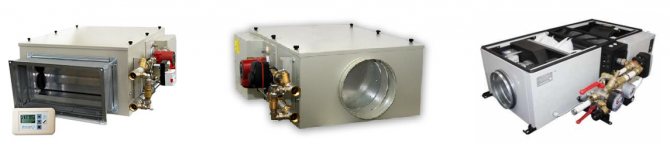 Le groupe d'appareils le plus courant, caractérisé par une efficacité, une sécurité et une facilité d'utilisation élevées. Ils utilisent l'eau chaude comme caloporteur, provenant du réseau de chauffage central, de l'eau chaude sanitaire ou de leur propre chaudière. Un chauffe-eau pour la ventilation d'alimentation est la solution la plus pratique et la plus économique qui vous permet d'effectuer les tâches assignées avec des coûts d'entretien ou de réparation minimes. Le seul inconvénient du dispositif est la nécessité de se connecter au système d'alimentation en liquide de refroidissement, ce qui crée certaines difficultés au stade de l'installation et empêche un transfert rapide vers un autre endroit.