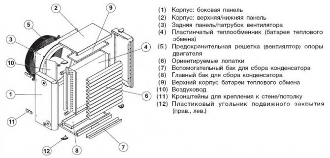 Pour la production de l'échangeur de chaleur, des tubes en cuivre sont utilisés et pour les ailettes, des plaques d'aluminium sont utilisées. Ils sont montés à l'arrière de l'appareil, ce qui simplifie grandement l'installation de l'appareil et améliore sa conception.