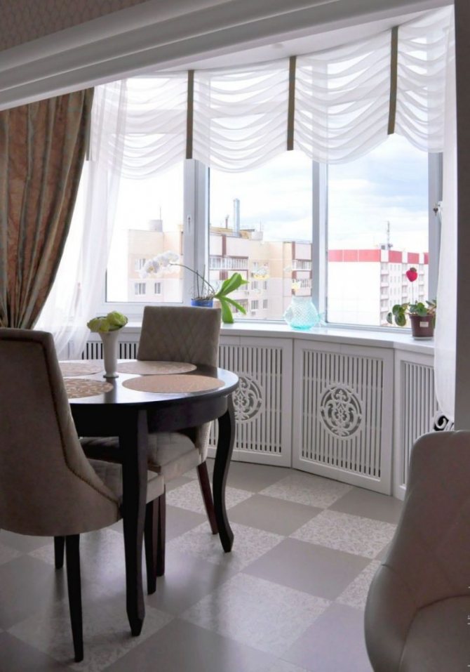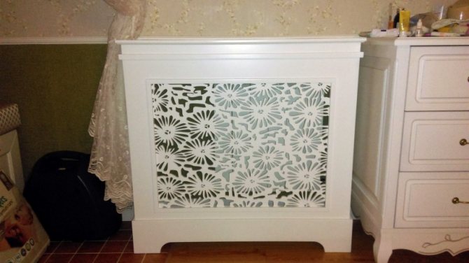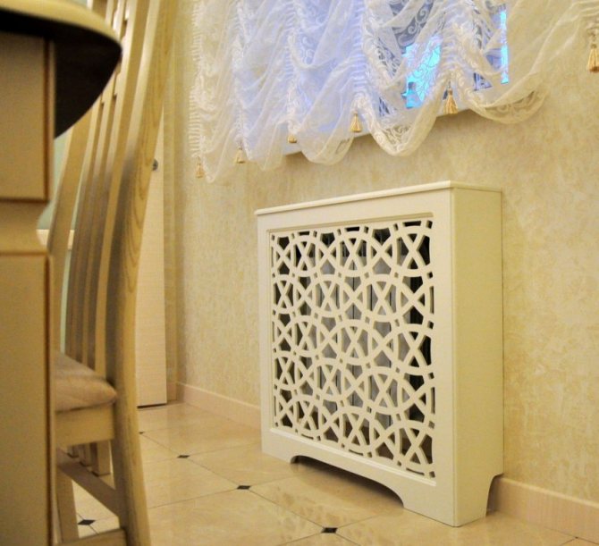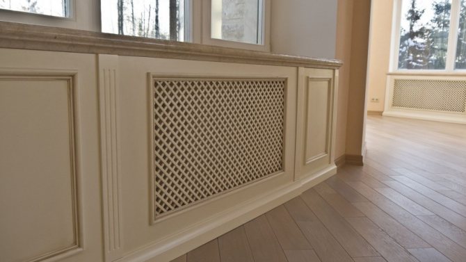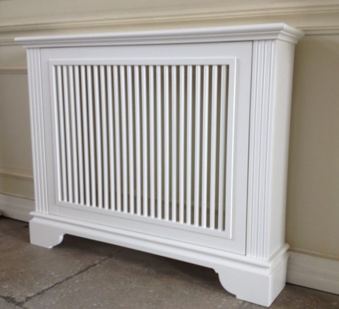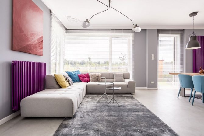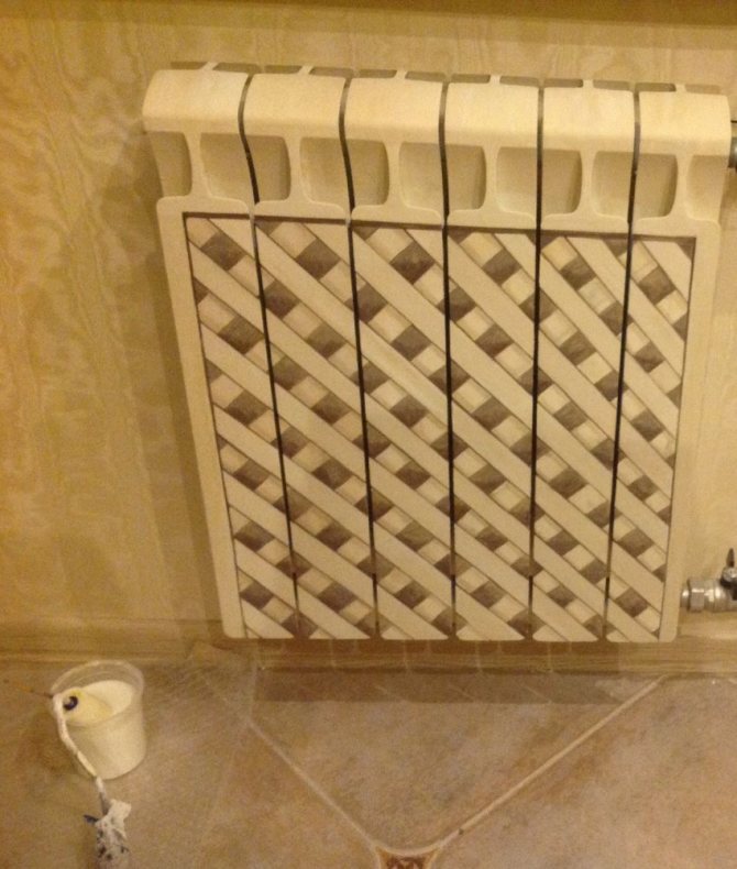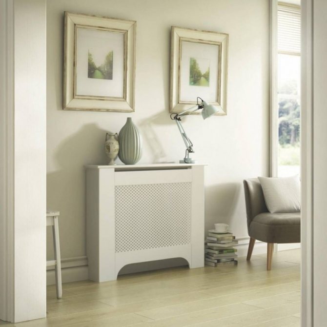 Vous pouvez couvrir l'élément chauffant avec un écran spécial, ce qui est cohérent avec le concept général de l'intérieur. Si vous le souhaitez, il peut simplement être peint dans une couleur contrastante.