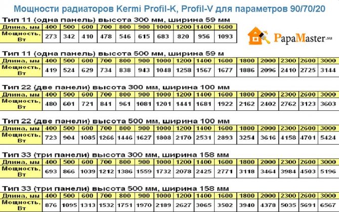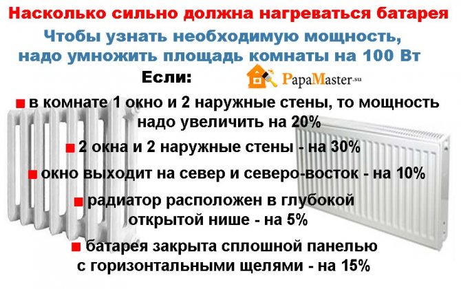 Cette méthode ne convient que pour calculer la taille de la batterie dans les pièces avec chauffage central, où la température du liquide de refroidissement ne dépasse pas 70 degrés Celsius.