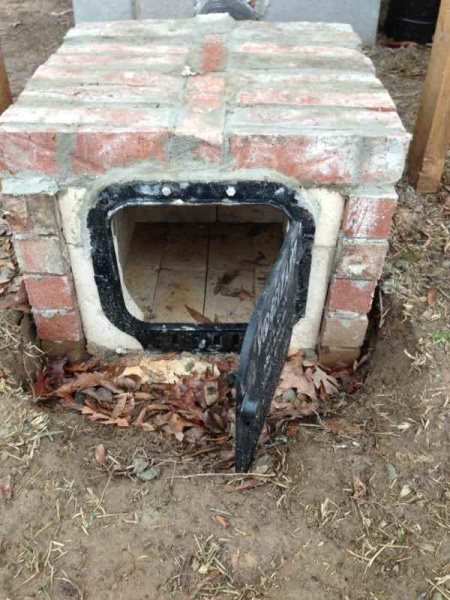 Après cela, la couche inférieure de maçonnerie et les murs de la chambre de combustion sont sortis de la brique. Au-dessus du foyer (couches inférieures de maçonnerie), une grille est montée, et une porte de soufflante et une porte de chargement de carburant sont installées dans la paroi extérieure. Le haut de la chambre de combustion est renforcé par un profilé métallique et une tôle sur laquelle des briques sont posées sur 1 à 2 rangées. Une ouverture pour la cheminée doit être prévue dans le mur du fond.